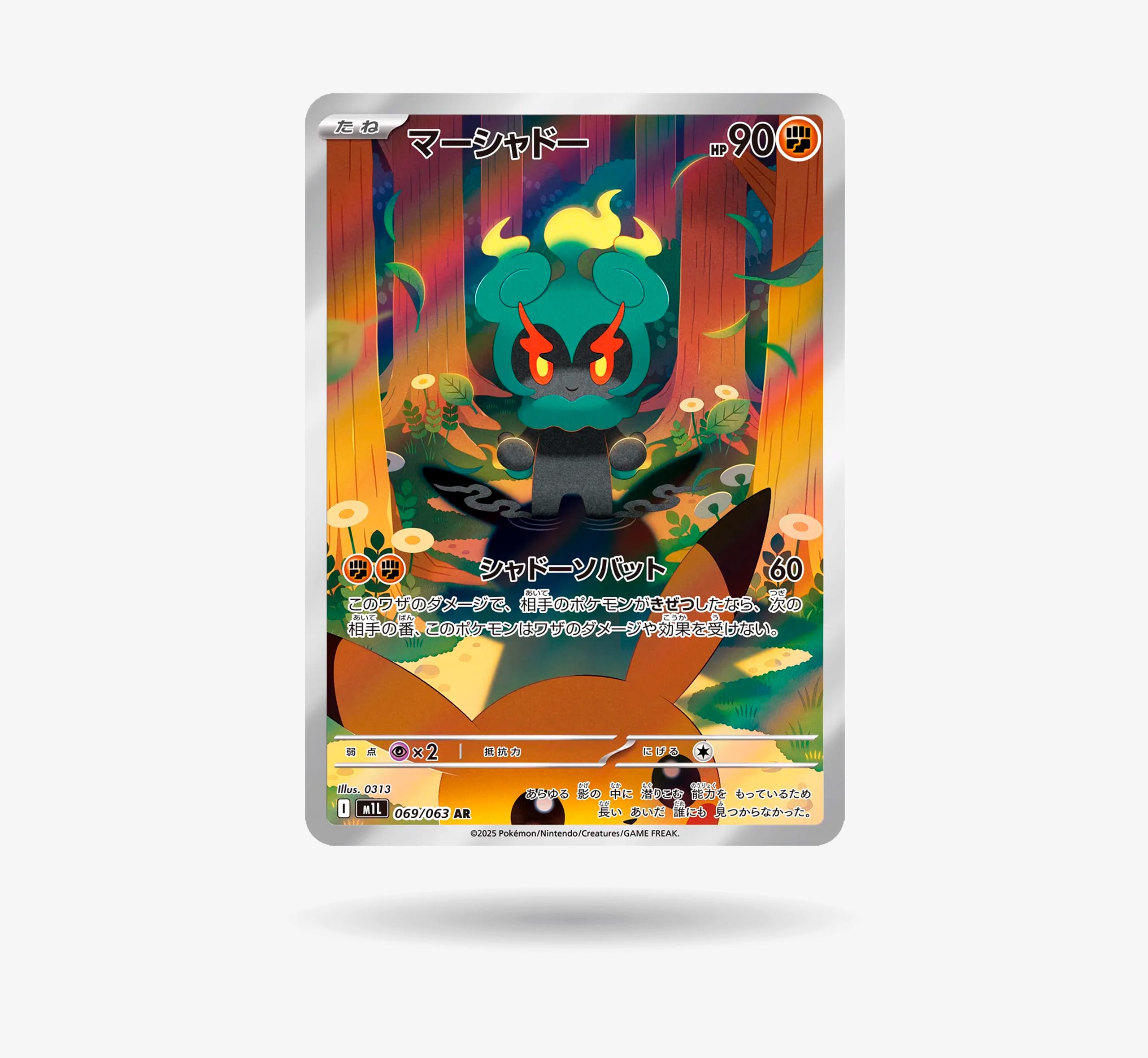 La carta Marshadow AR del set japonés Mega Brave (M1L) es una Illustration Rare lanzada en 2025.